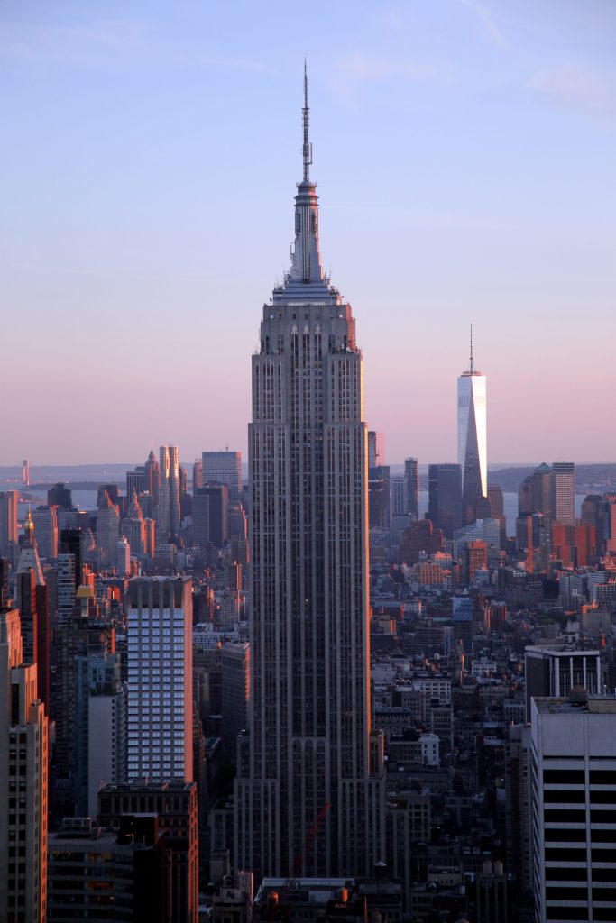 Comenzamos con el Empire State Building que, con sus 443,2 metros, es el rascacielos más famoso de la isla de Manhattan. No es el más alto, (sí lo fue durante nada menos que 40 años hasta la construcción de las Torres Gemelas y durante los 13 años siguientes a la destrucción de éstas) ni tampoco es que sea el estéticamente más bonito pero, por su situación en el corazón de la isla y sus 89 años de historia, el Empire State es todo un emperador de Manhattan.
