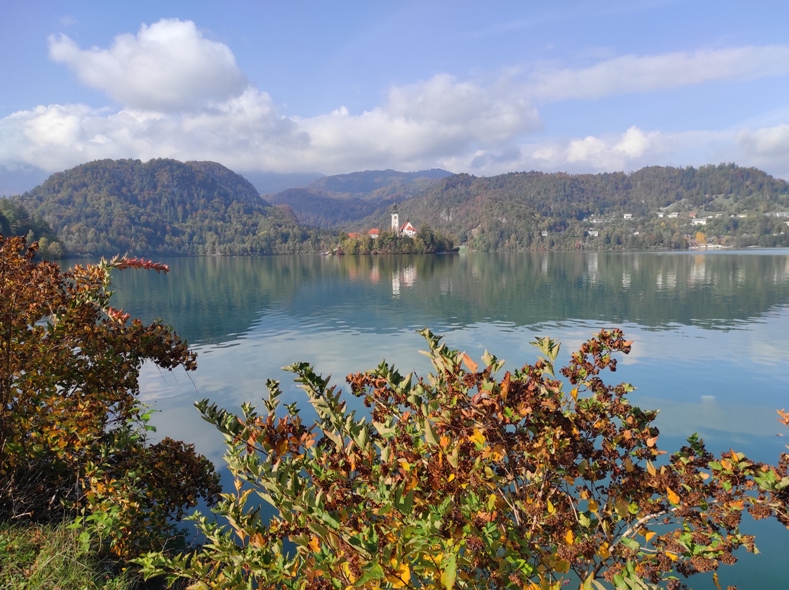 En el extremo occidental del lago se sitúa el icono de Eslovenia. Su superficie es de únicamente 0,82 hectáreas, el equivalente a las dimensiones de un campo de fútbol.